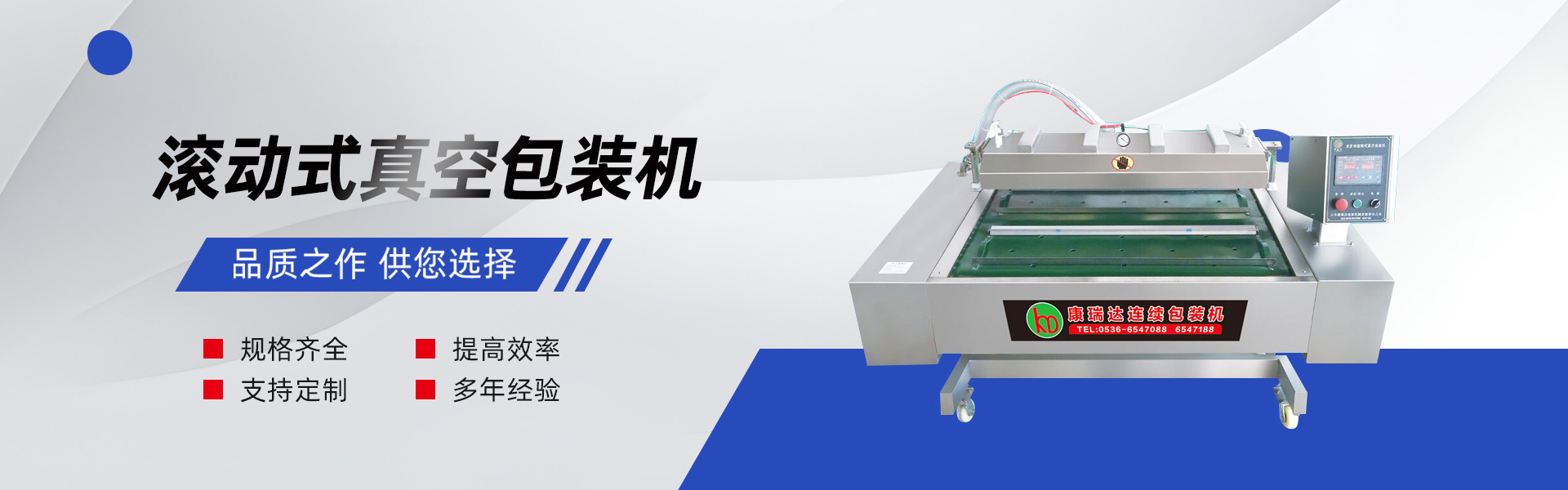 主要產品:康瑞達智能拉伸膜包裝機系列;康瑞達真空包裝機系列。 康瑞達,讓客戶無限強大!康瑞達人堅持有好人品才有好產品,強強聯(lián)手,激流勇進,不忘初心,砥礪前行,康瑞達繼續(xù)致力于打造—全球智能真空包裝機械客戶放心產品......